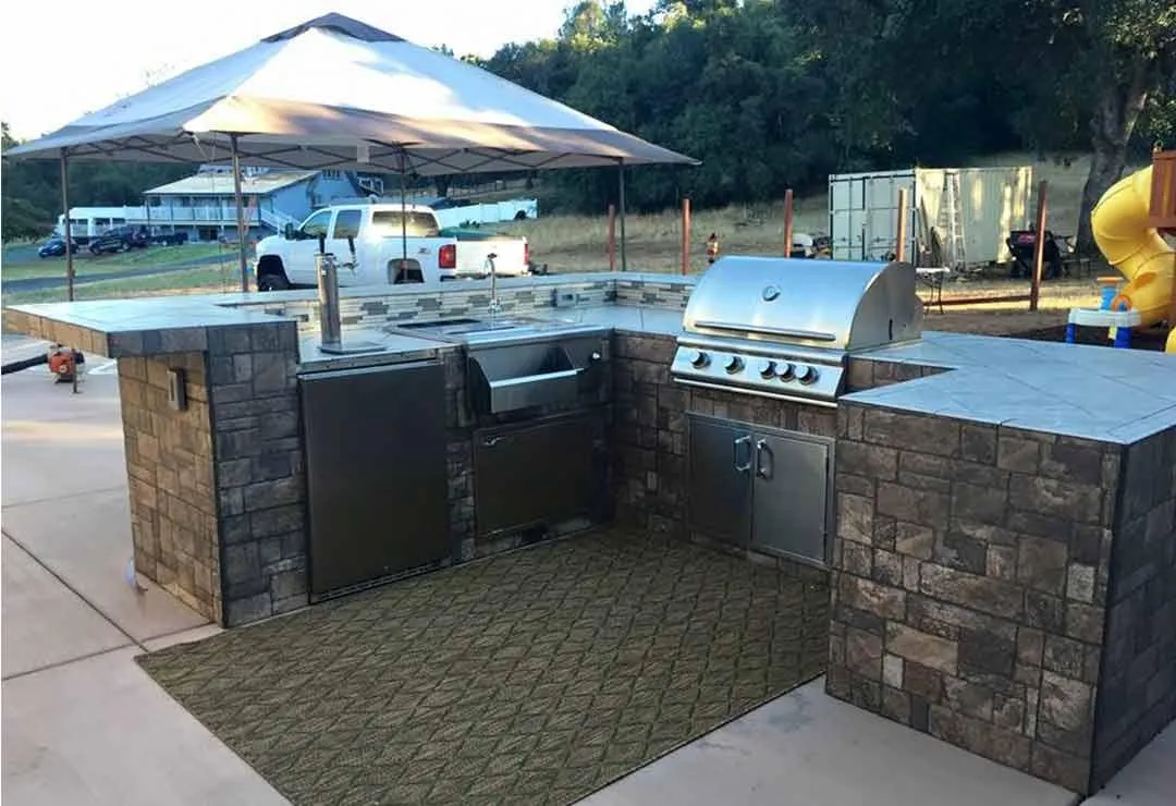 Grills, pizza ovens, smokers, refrigerators, sinks, ice makers, and storage cabinets can all be incorporated.